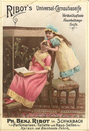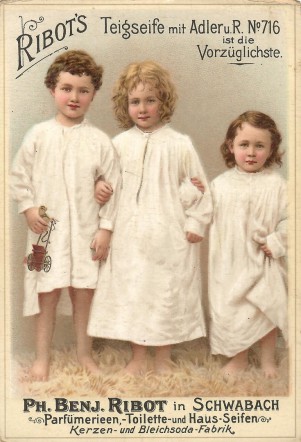 Im Jahr 1896 hat die Firma Ribot Ihr Angebot in der Firmierung spezifiert zu Parfümerieen-, Toilette- und Haus-Seifen (Serie III).